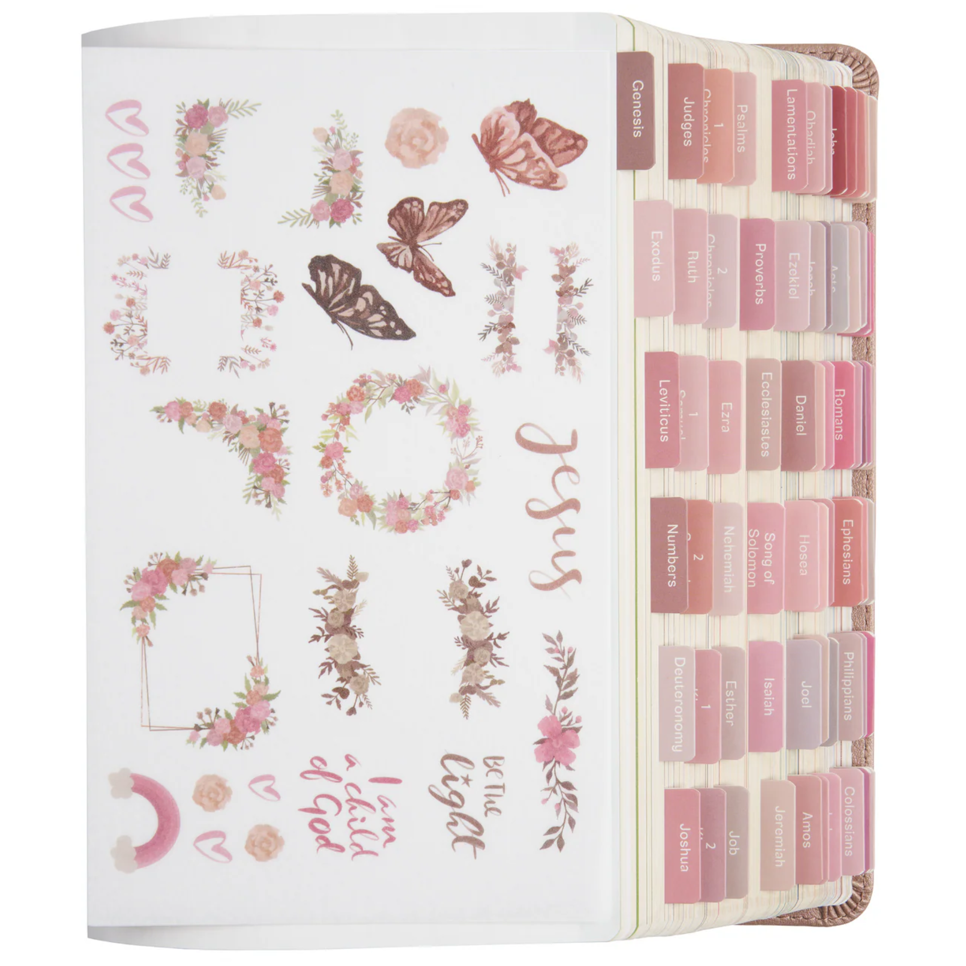 - Compatibilidad versátil: Estas pestañas de la Biblia son compatibles con la mayoría de las versiones y tamaños de la Biblia, lo que las convierte en una adición versátil a tus herramientas de estudio.